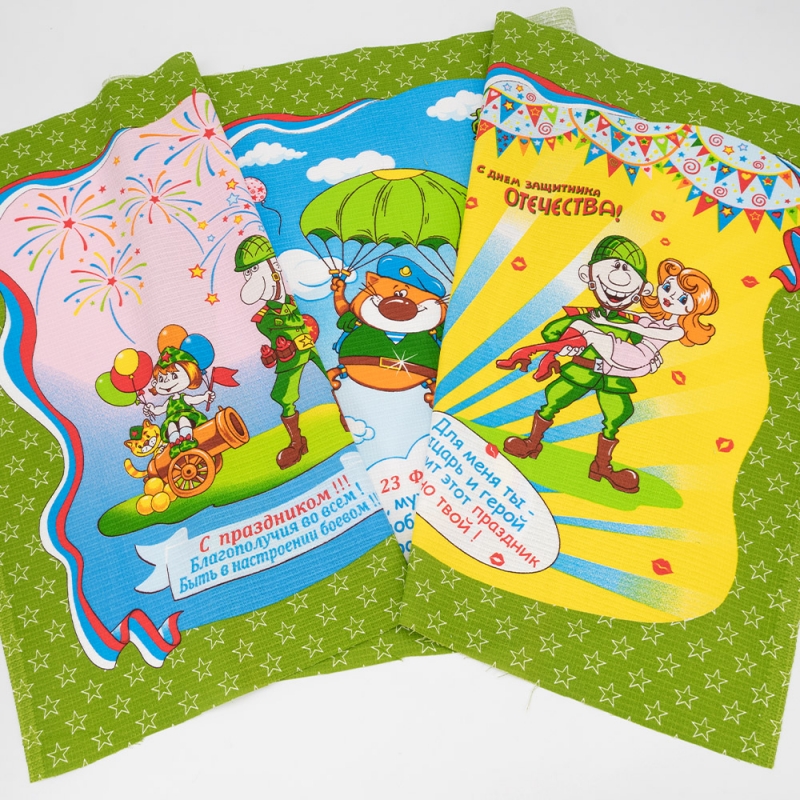 Ткань на отрез вафельное полотно набивное 150 см 35010/1 День защитника отечества